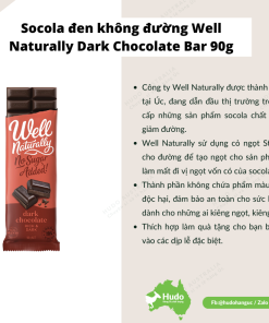 Socola đen không đường Well Naturally Dark Chocolate Bar 90g